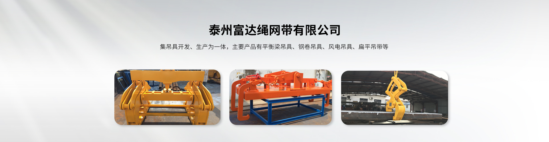 泰州市富達(dá)繩網(wǎng)帶有限公司是吊具開(kāi)發(fā)、生產(chǎn)為一體的生產(chǎn)廠(chǎng)家,主要產(chǎn)品有平衡梁吊具、鋼卷吊具、風(fēng)電吊具、扁平吊帶等。